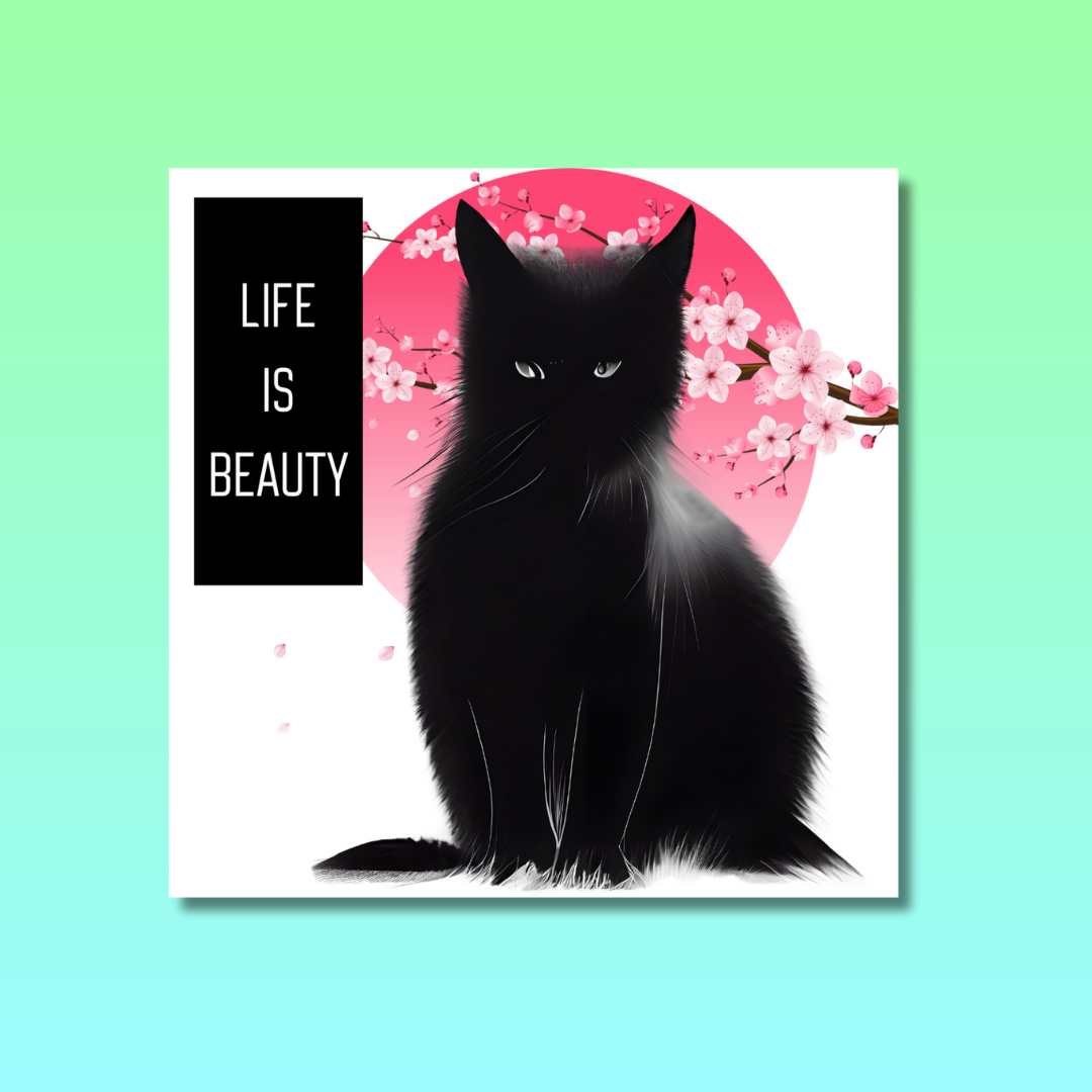 Let your love for furry friends shine with the beautiful L.I.B. Cat Japanese Style Square Sticker. The stunning design is sure to capture the attention of other animal lovers. Perfect for expressing your admiration for life!